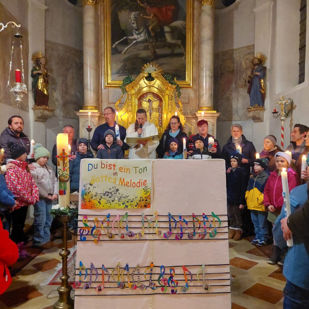 Unter dem Motto „Du bist ein Ton in Gottes Melodie“ feierten die Kinder der 2a und 2b in der Oberlangkampfner Kirche am Samstagabend (08.02.) ihren Vorstellungsgottesdienst mit Tauferneuerung. Die musikalische Gestaltung übernahmen die Kinder mit ihren Klassenlehrerinnen Frau Hörhager Elisa und Frau Horngacher Sandra. Danke an alle die mitgestaltet und mitgefeiert haben!