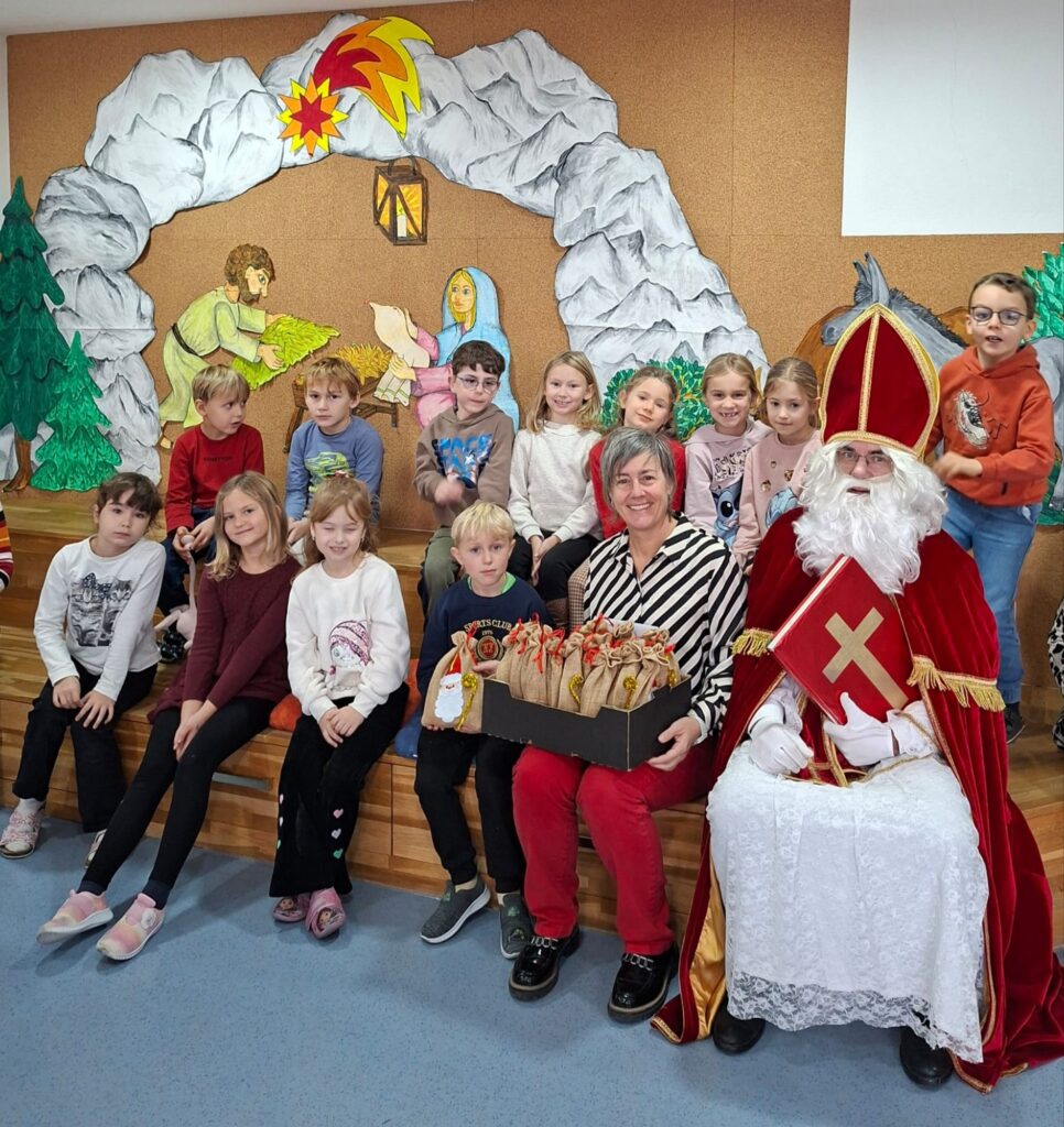 Am 5. Dezember besuchte der Nikolaus unsere Schule. Er ging in alle Klassen und begrüßte die Kinder freundlich.