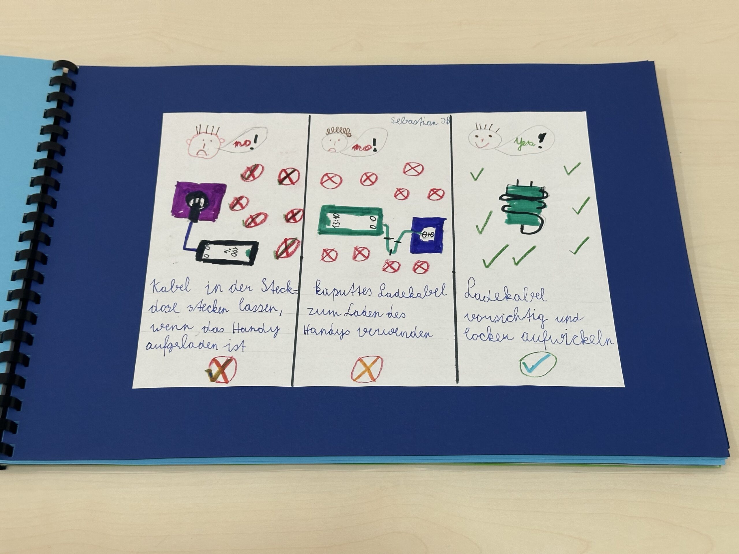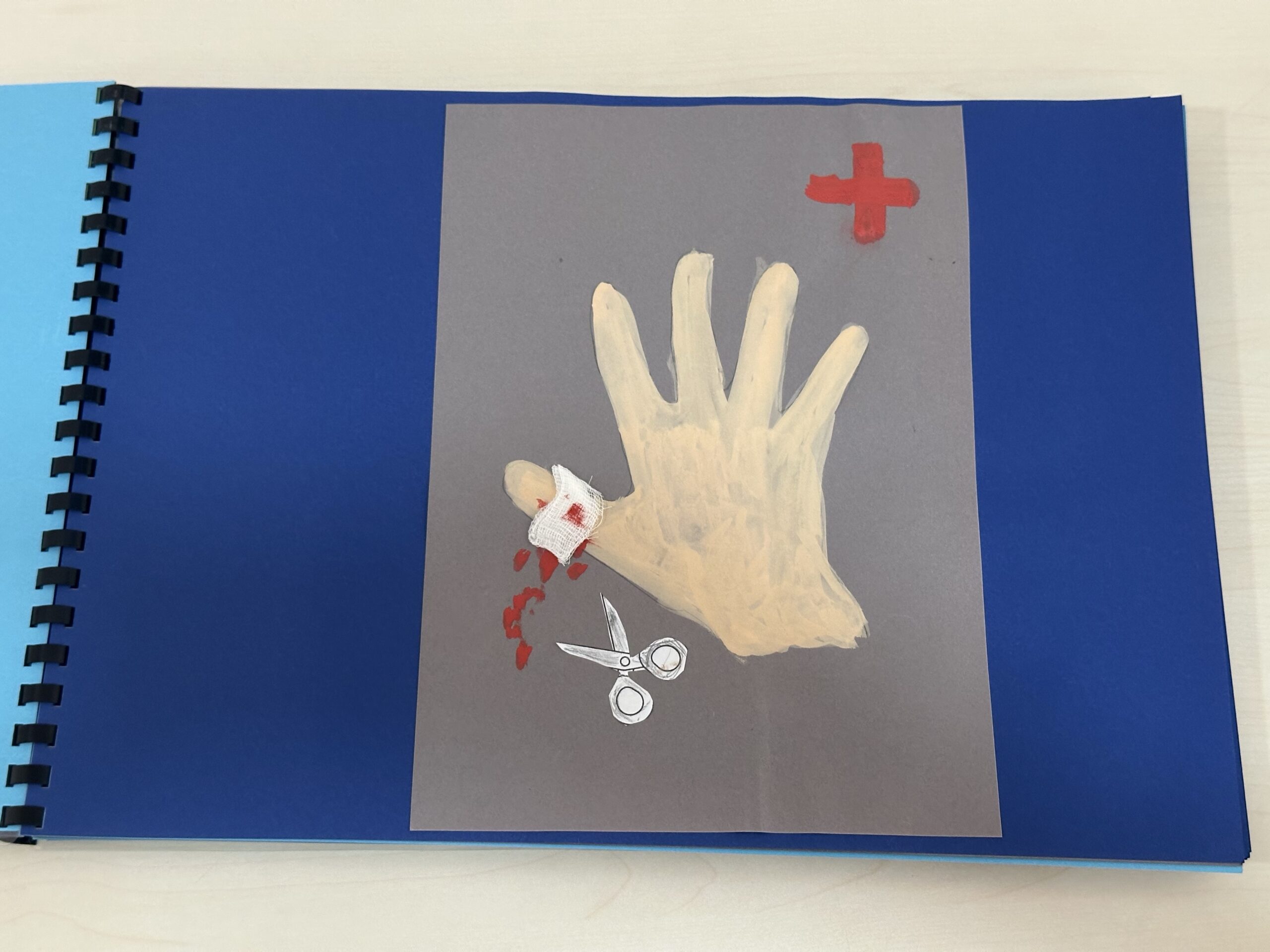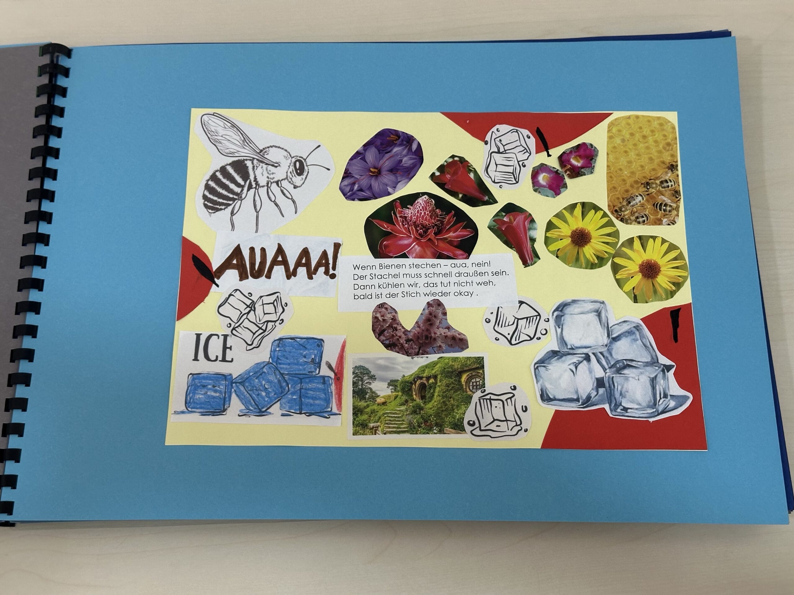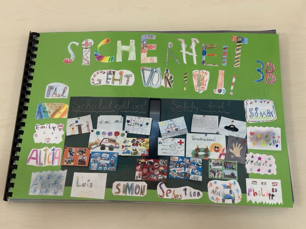 In kreativen, fächerübergreifenden Projektstunden beschäftigten wir uns in den folgenden Wochen intensiv mit unseren Ideen und so entstanden unser Sicherheitsgedicht zum Motto „Sicherheit geht vor“ – Safety first!“ (vgl. Beitrag Sicherheitsvideo 3b vom 19.1.26) sowie viele dazugehörige Zeichnungen und Collagen.