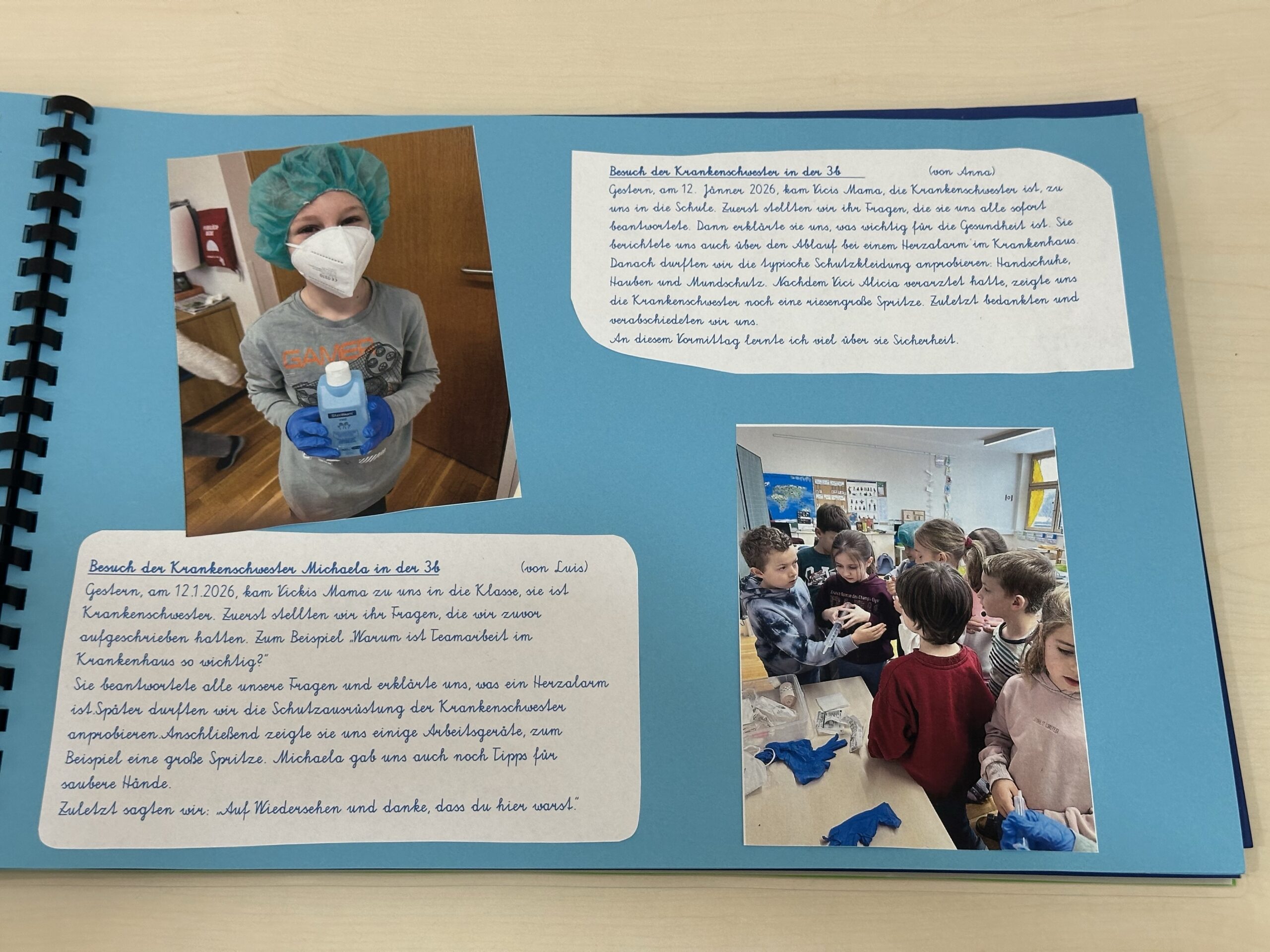 Um uns in verschiedenen Themen noch fachkräftige Tipps zu holen und unser Wissen zu vertiefen, luden wir eine Polizistin, eine Krankenschwester und auch die Feuerwehr zu uns in die Klasse ein. Wir freuten uns sehr, dass sie die Zeit fanden, uns zu besuchen, alle unsere offenen Fragen zu beantworten und uns viel Interessantes über ihre Arbeit zu berichten. Wir lernten dabei viel Wichtiges über die Sicherheit im Alltag und in ganz besonderen Situationen.