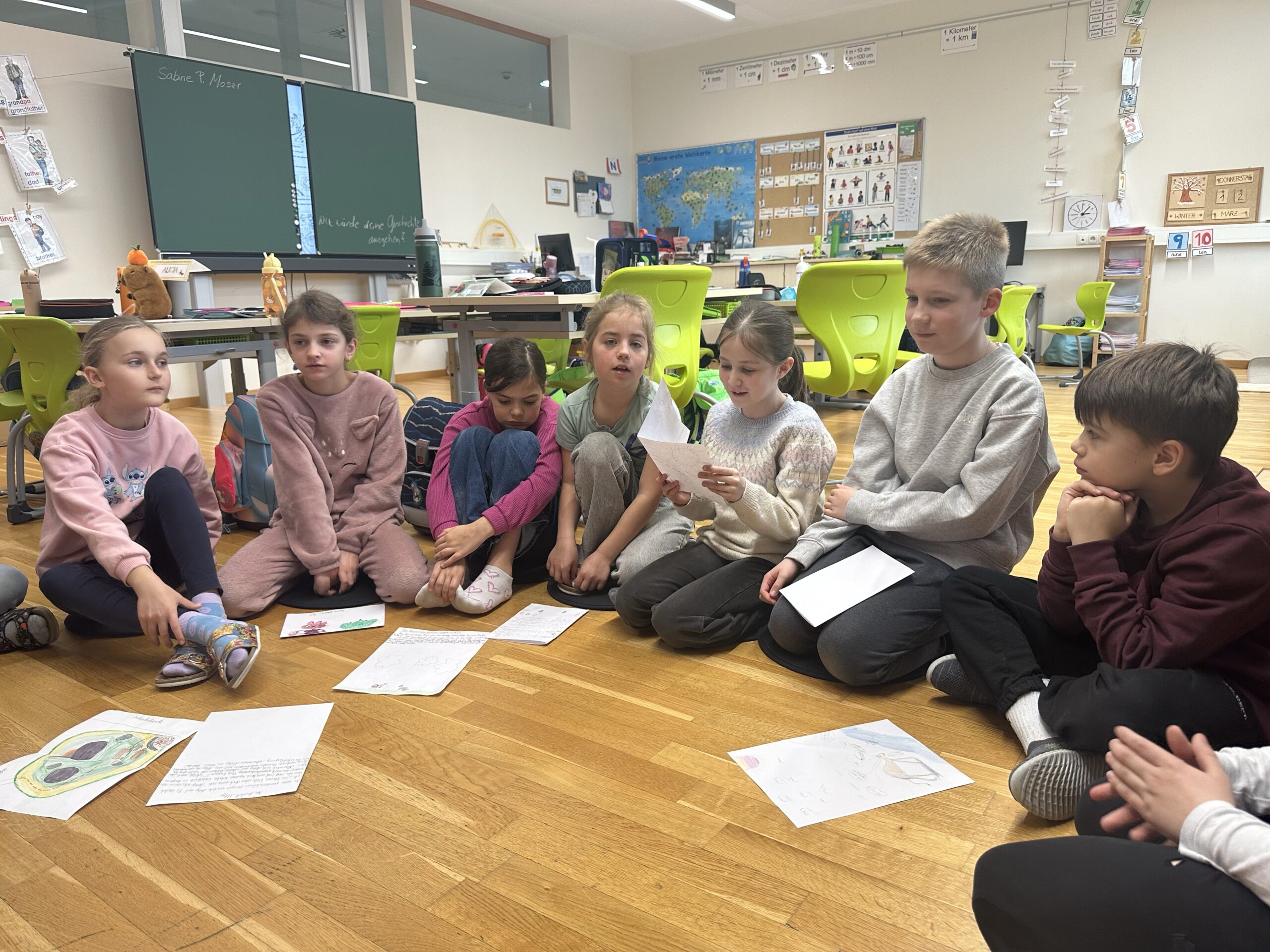 Richtig kreativ wurden die Mädchen und Buben im Anschluss, als sie in einer „Schreibwerkstatt“ eigene Ideen zur Fortsetzung der Geschichte oder neu erfundene Erzählungen schreiben oder zeichnen konnten. Am Ende durften sich alle jungen Autorinnen und Autoren ihre Ideen gegenseitig vorlesen. Selbst Frau Moser war begeistert von den tollen Einfällen der Kinder.