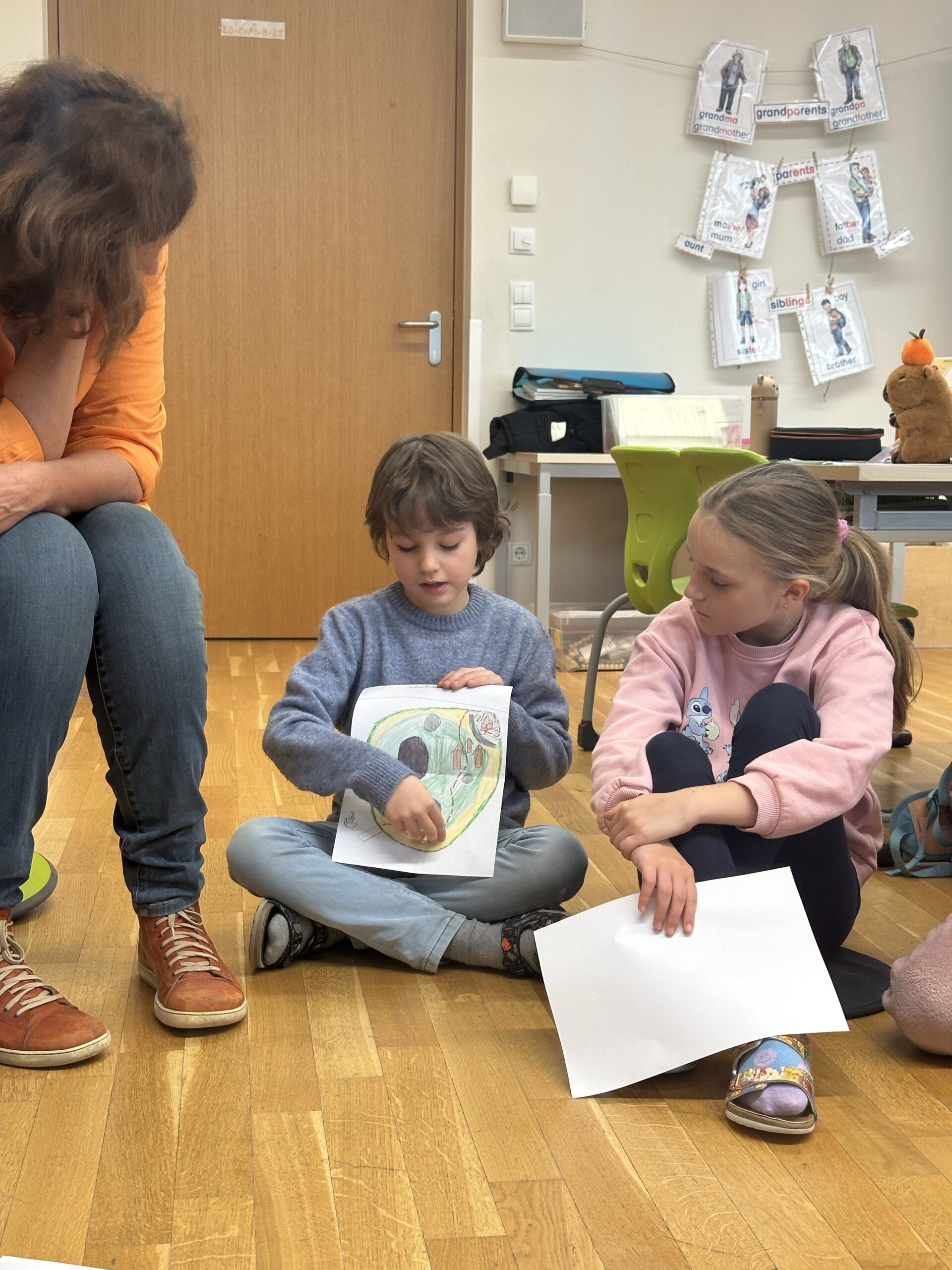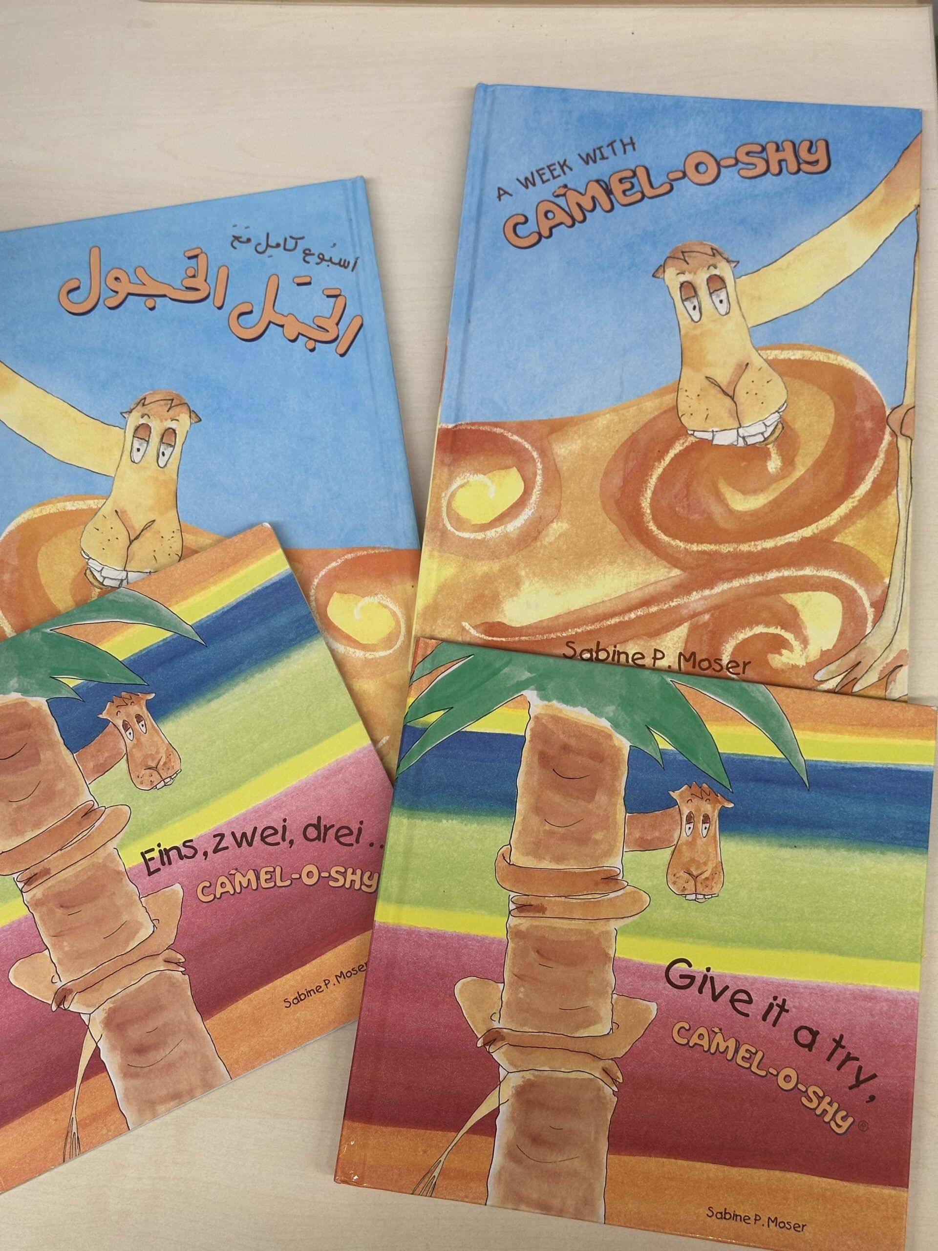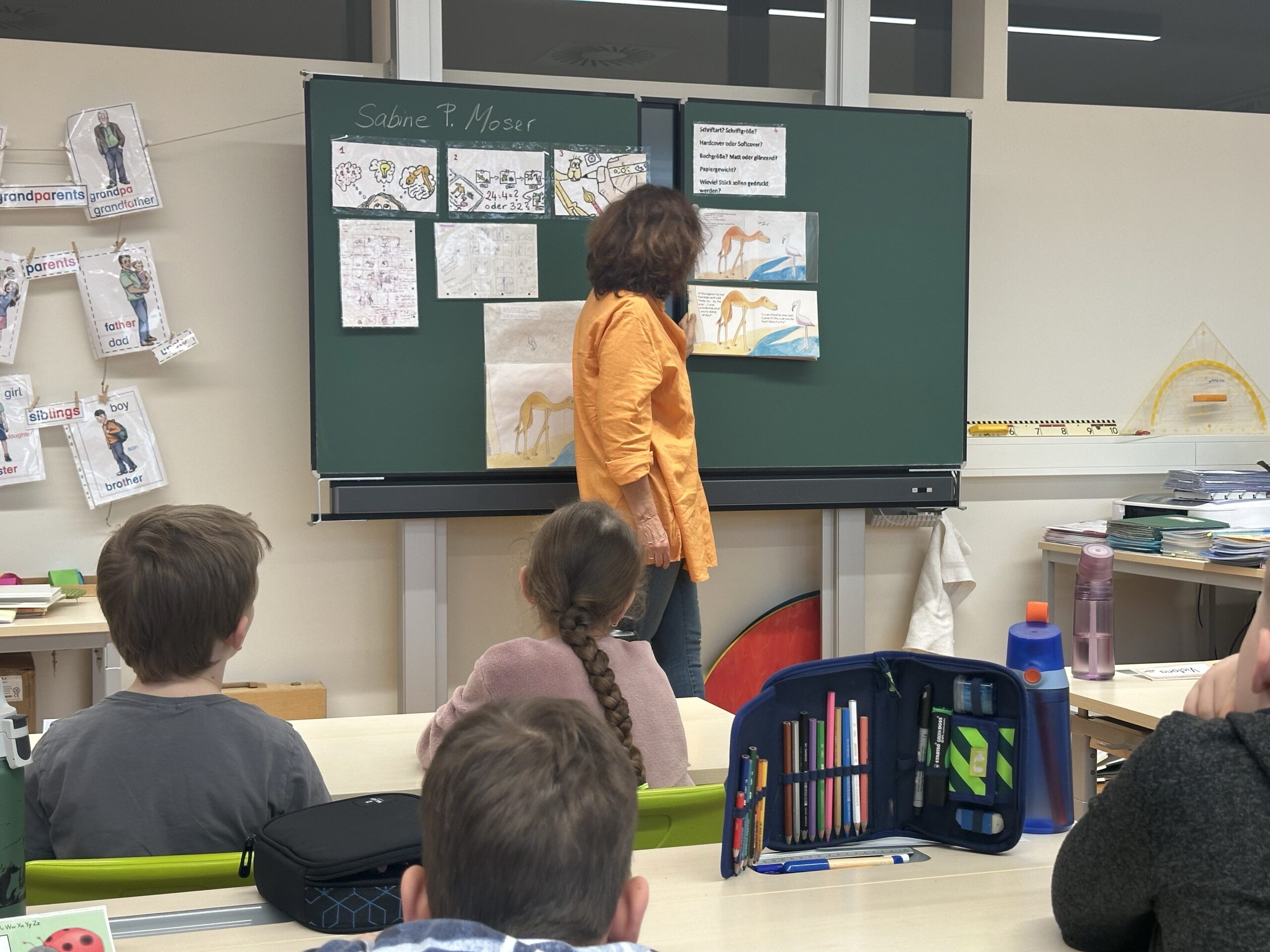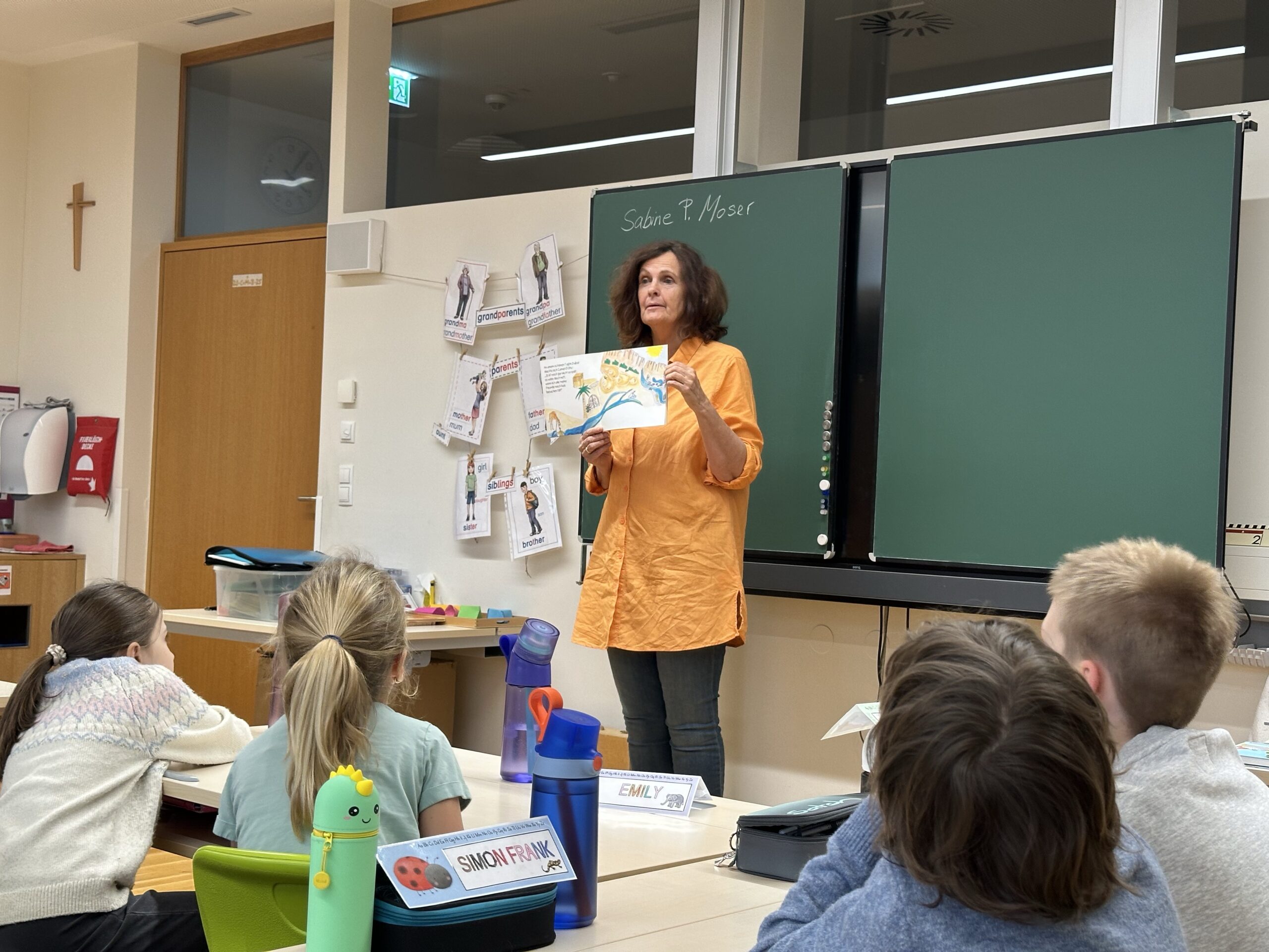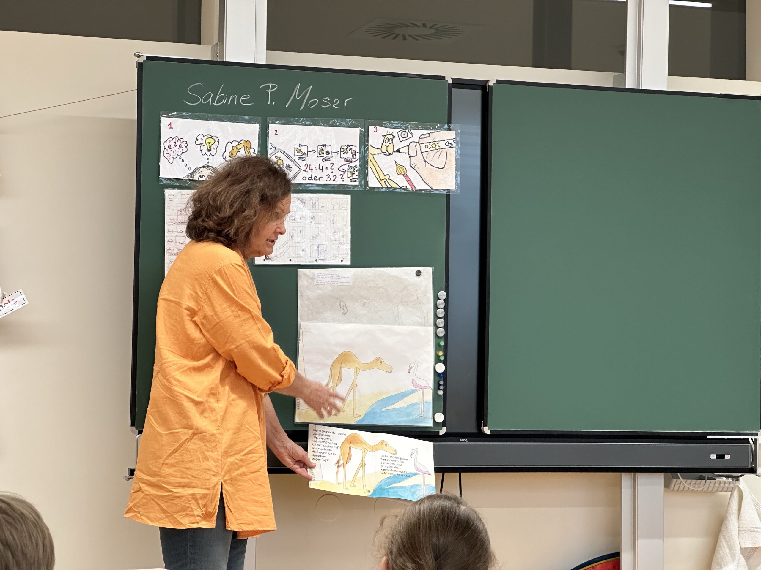 Frau Mosers Buch „Give it a try – Camel-o-shy“ begeisterte die Schülerinnen und Schüler. Sowohl die zweisprachige Lesung des Buches – teils auf Englisch, teils auf Deutsch – als auch die Erklärungen zur Entstehung des Werks fanden die Kinder sehr spannend.