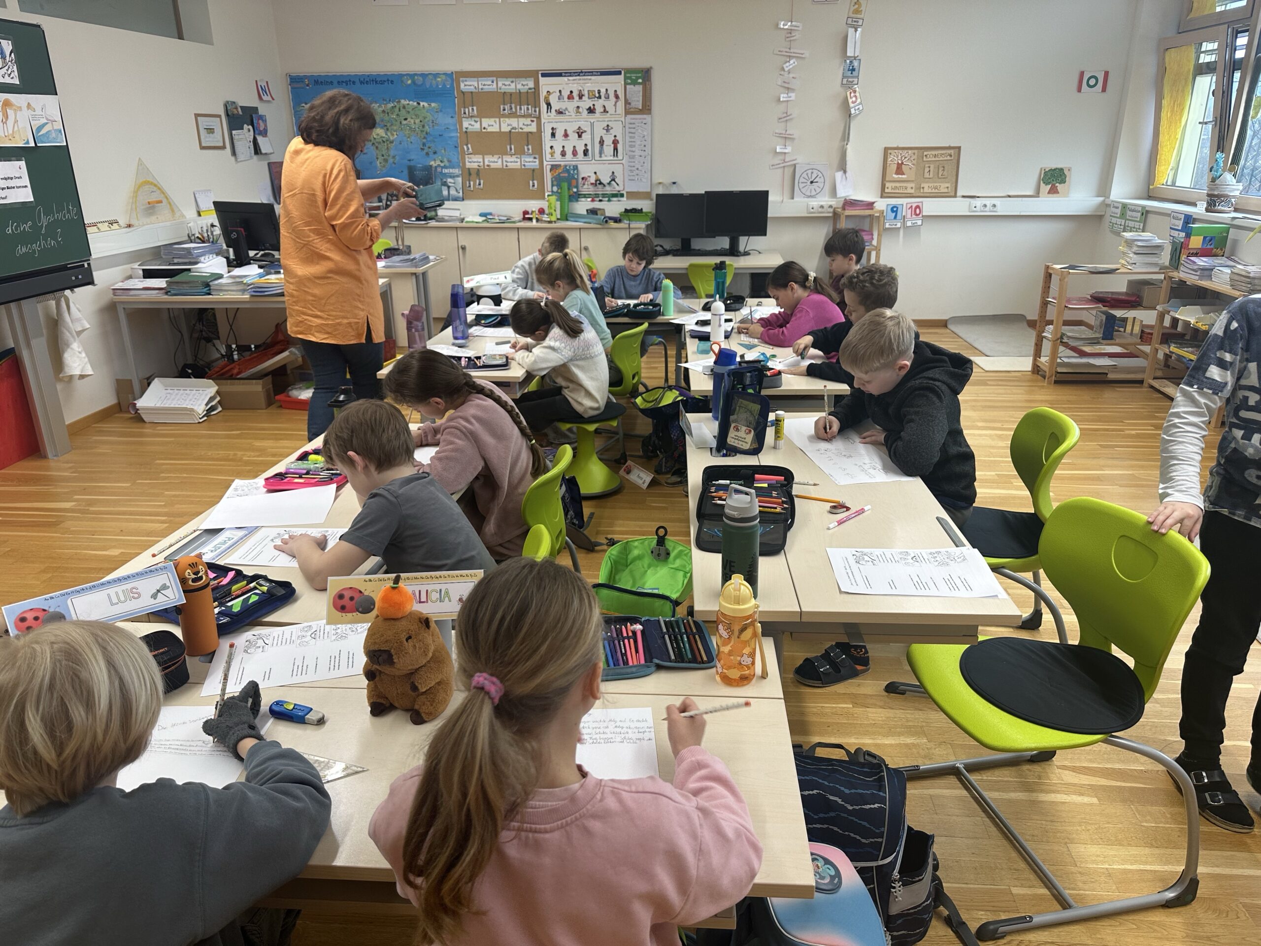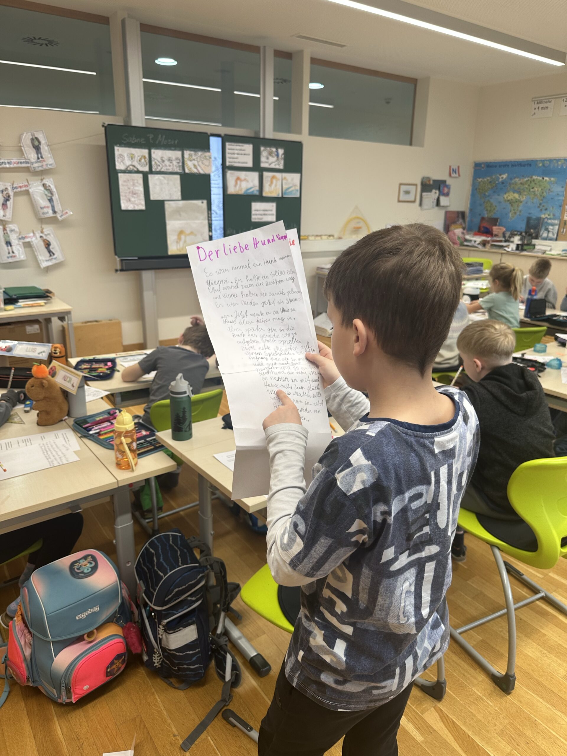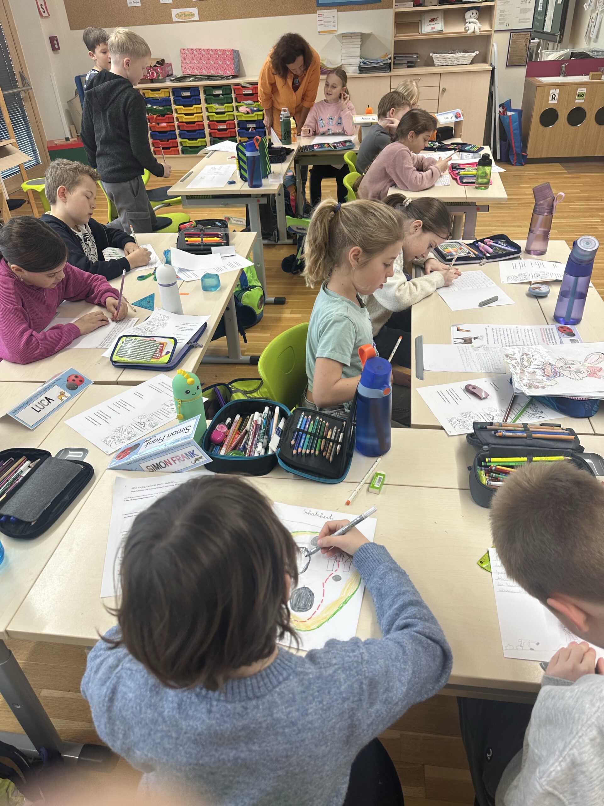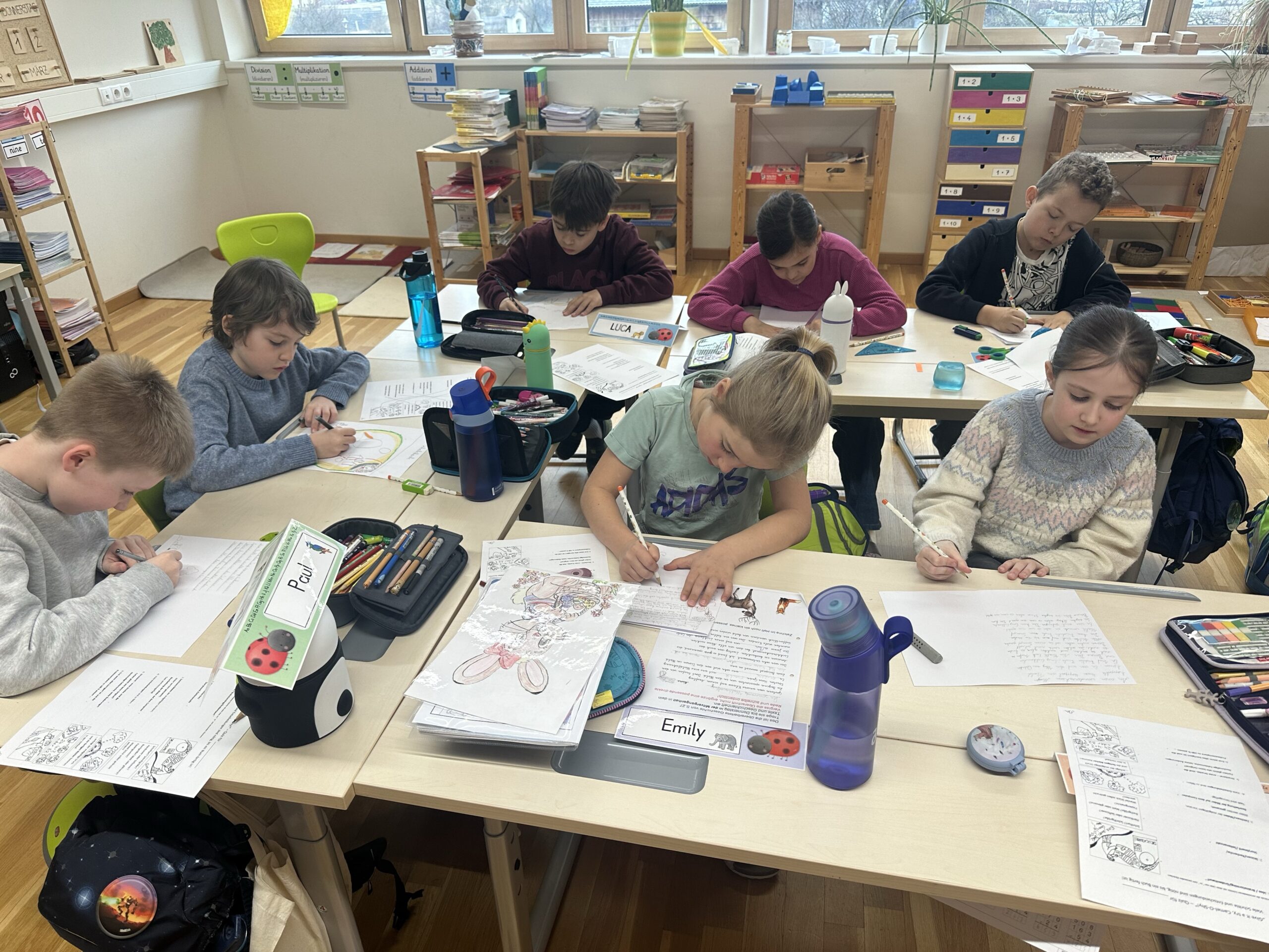 Richtig kreativ wurden die Mädchen und Buben im Anschluss, als sie in einer „Schreibwerkstatt“ eigene Ideen zur Fortsetzung der Geschichte oder neu erfundene Erzählungen schreiben oder zeichnen konnten. Am Ende durften sich alle jungen Autorinnen und Autoren ihre Ideen gegenseitig vorlesen. Selbst Frau Moser war begeistert von den tollen Einfällen der Kinder.