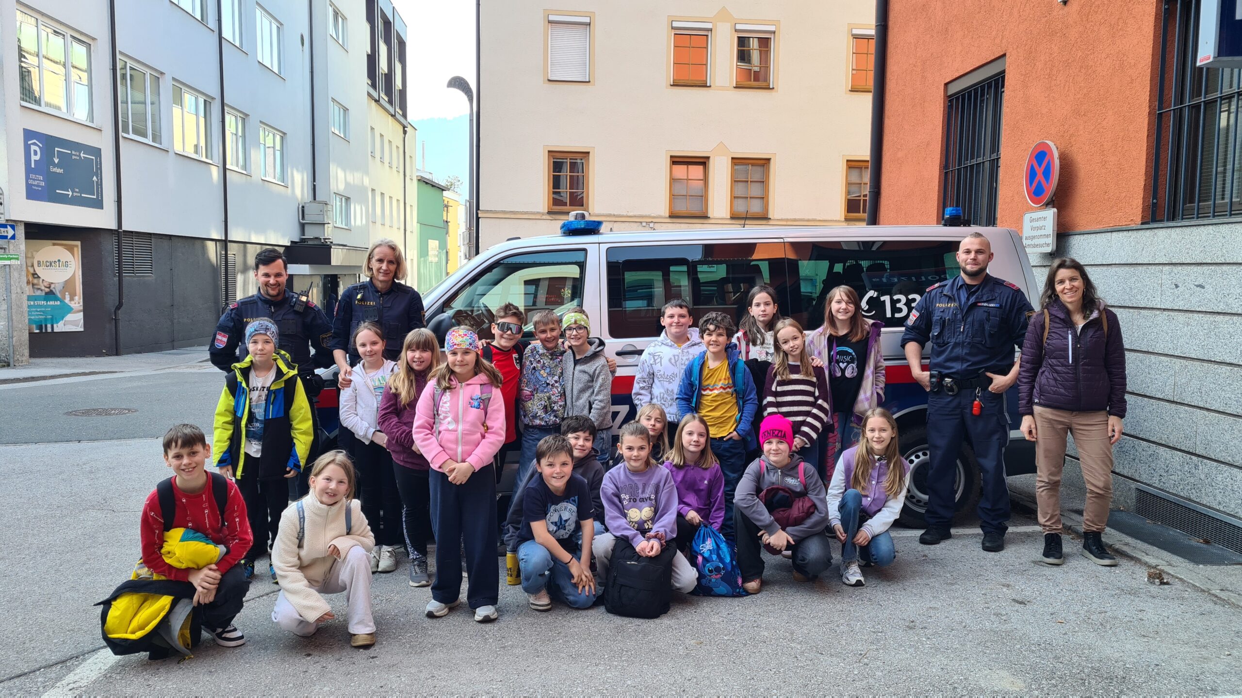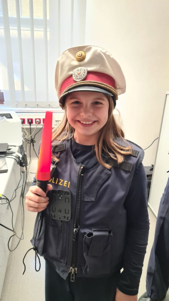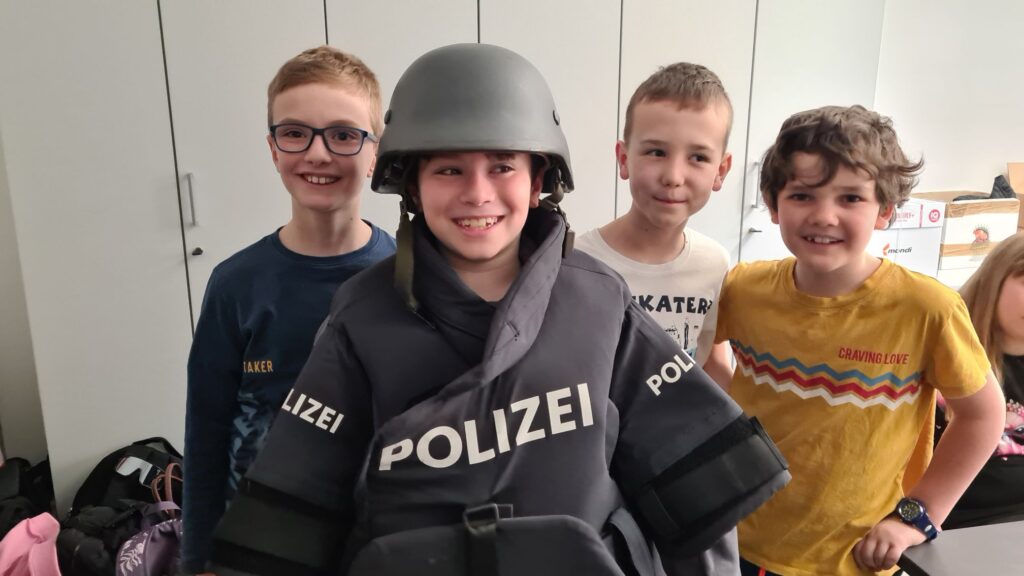 Besuch der Polizeistation Kufstein 25. März 2026 Ulrike Steinlechner 13 Views Am 4. März 2026 besuchte die 4. Klasse die Polizeistation in Kufstein. Wir erfuhren mehr über die Arbeit der Polizei und durften auch in die Rolle der Polizistinnen und Polizisten schlüpfen.