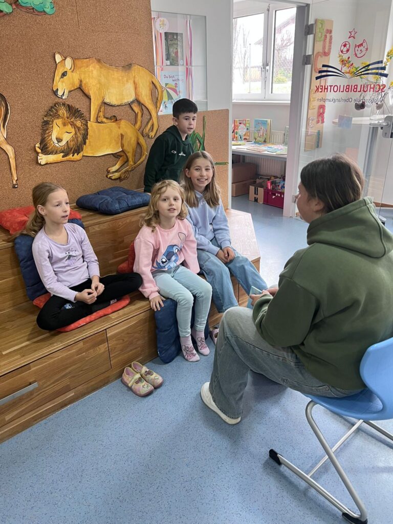 Die Buddys der 4. Klassen der MS Langkampfen besuchten in Begleitung von Frau Rieser und Frau Winkler die 1. und 2. Klassen und lasen den jüngeren Kindern spannende und lustige Geschichten vor.